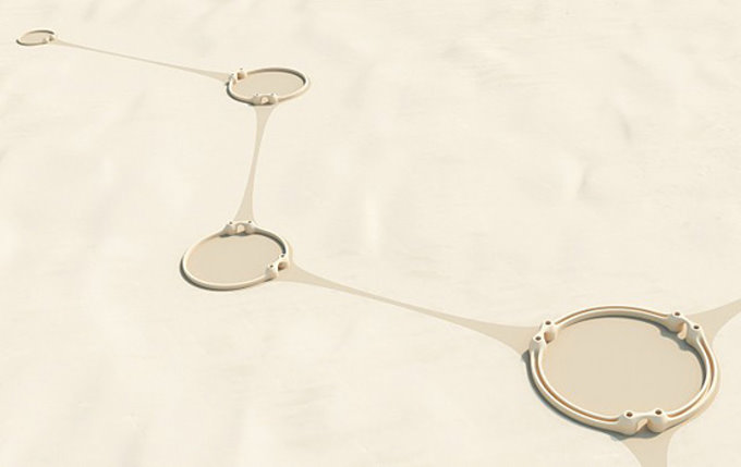 Luca Curci architects studio presents Desert City, a project proposal for a sustainable way to live the desert. The project was born from the interpretation of border’s concept, conceived not only as a line which divides 2 places but, at the same time, as a conjunction point between private and public space. The project aims to create a lifestyle characterized by energy saving, resources streamlining, respect of nature and human relationship enhance. It proposes a community based on new characteristics and social identities, a social-economic model aimed to cooperation and people participation. Sustainable Communities.